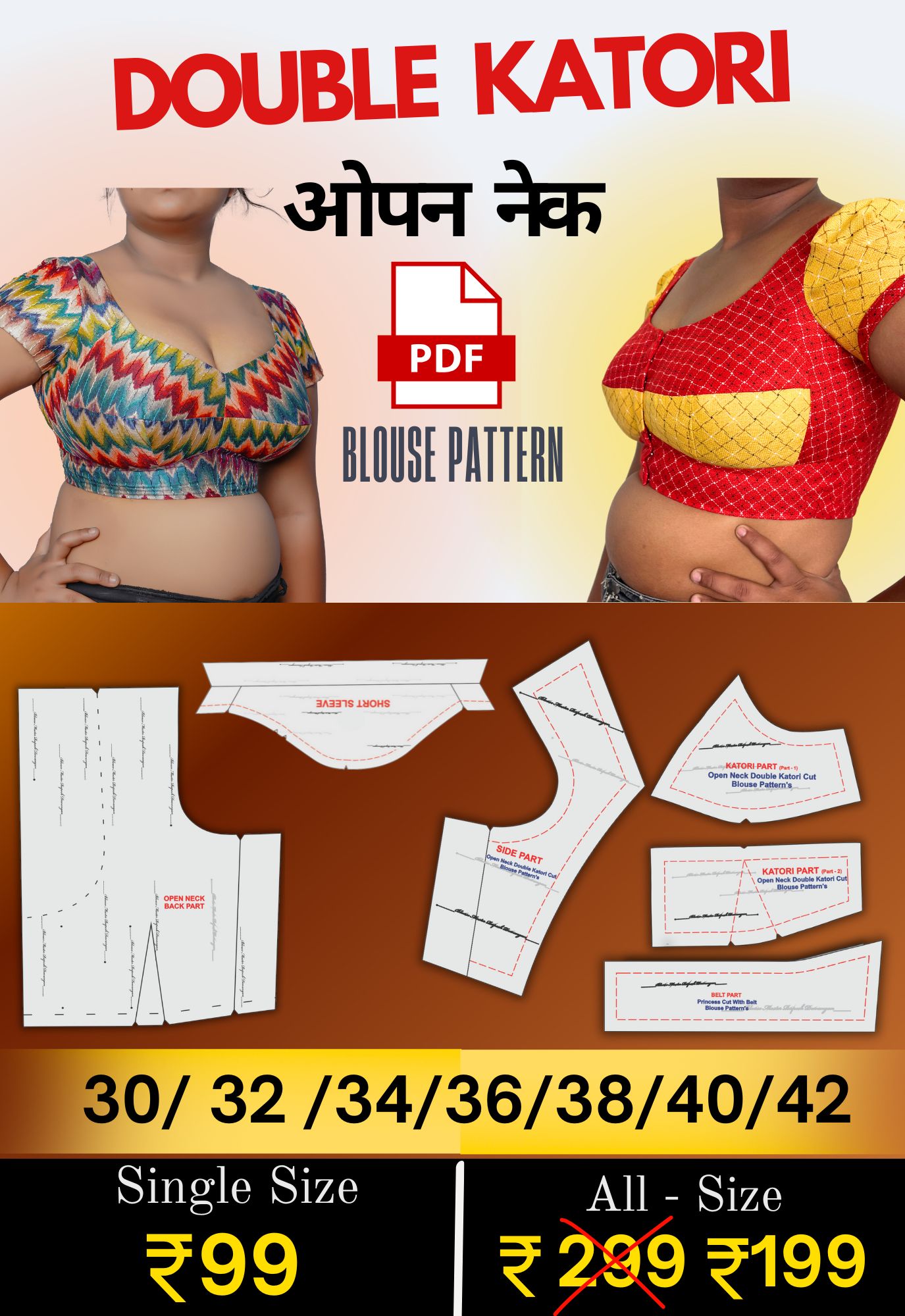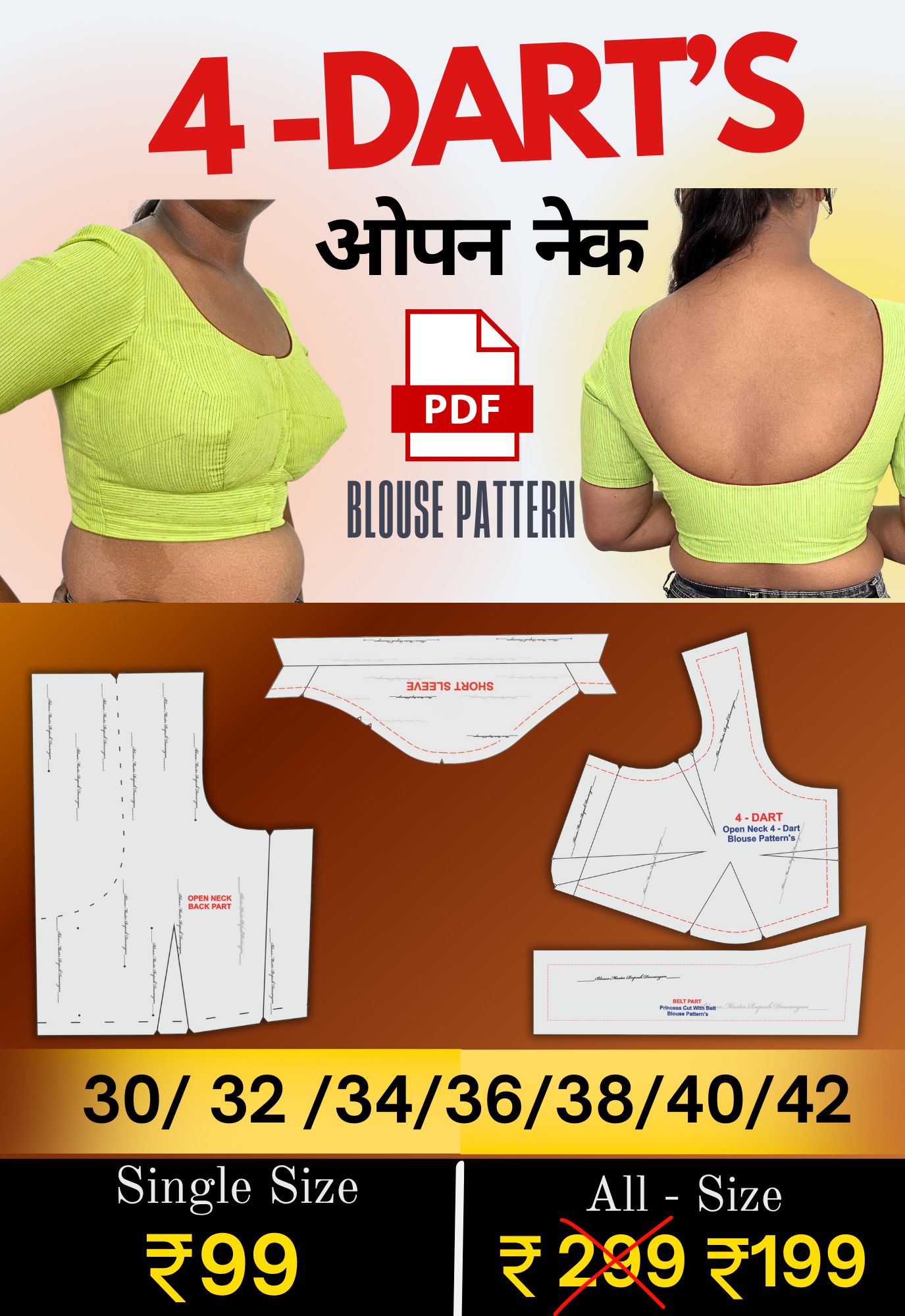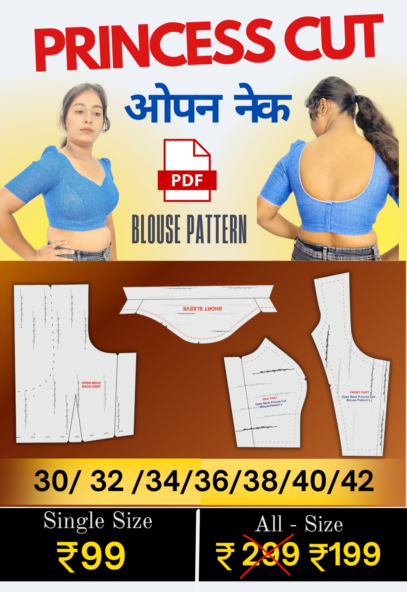 Princess cut with belt Open Neck PDF Blouse Pattern