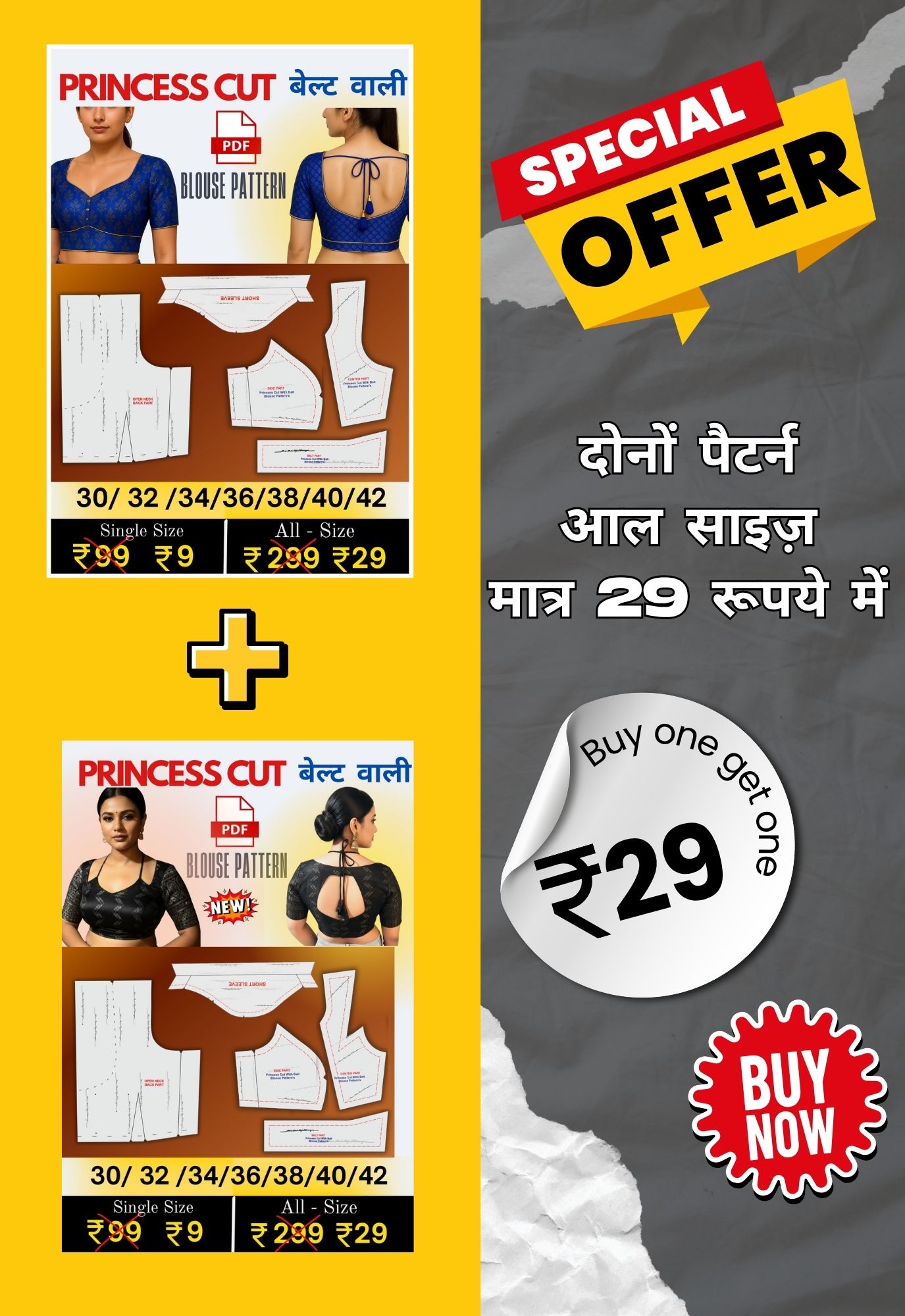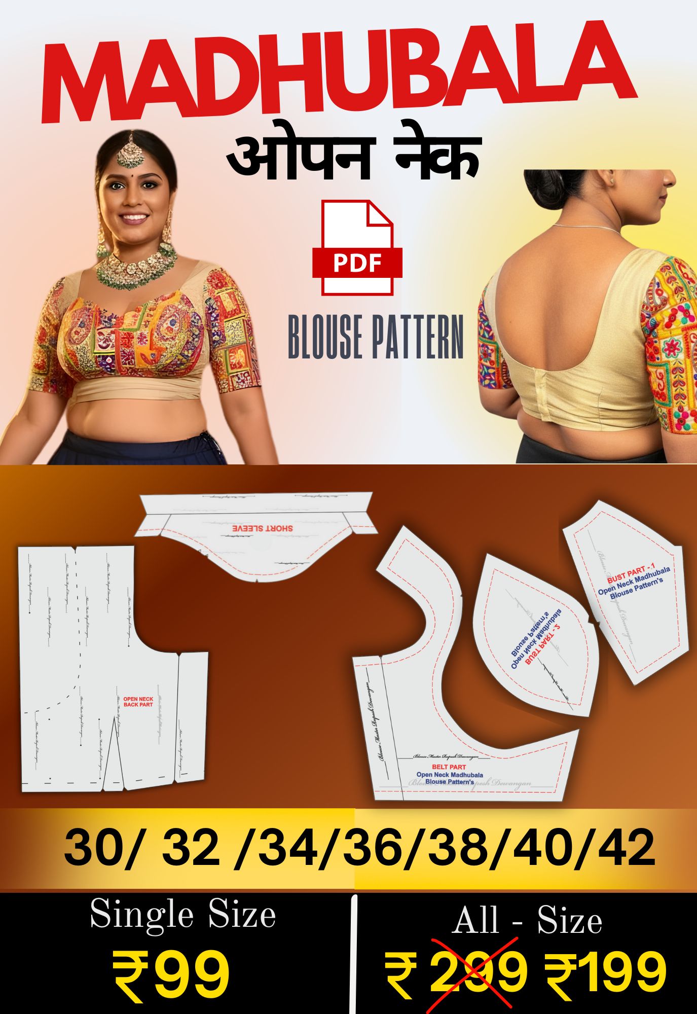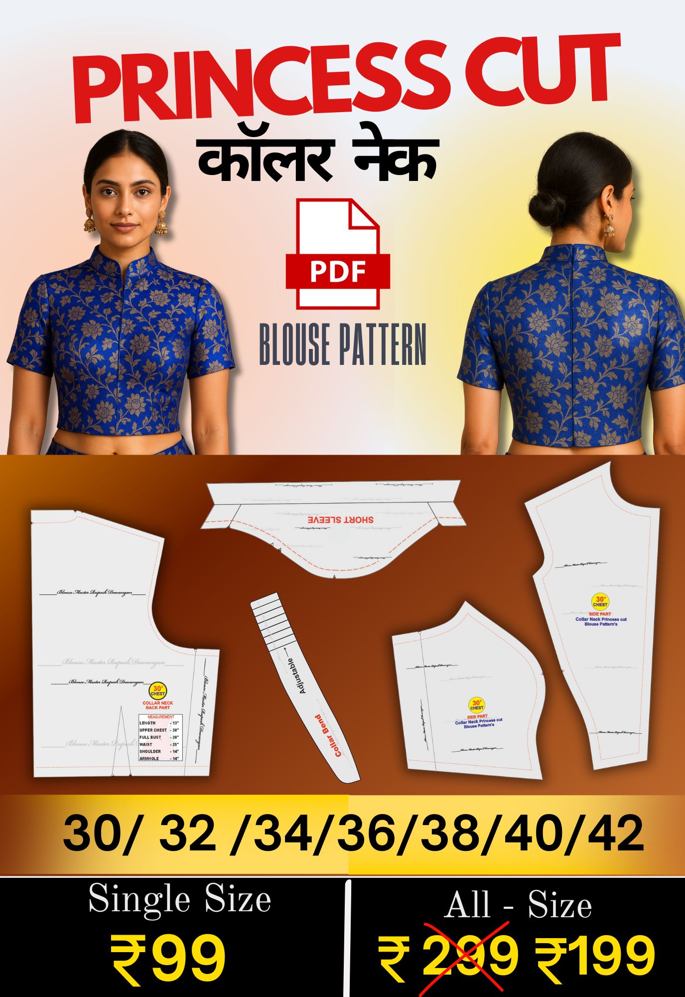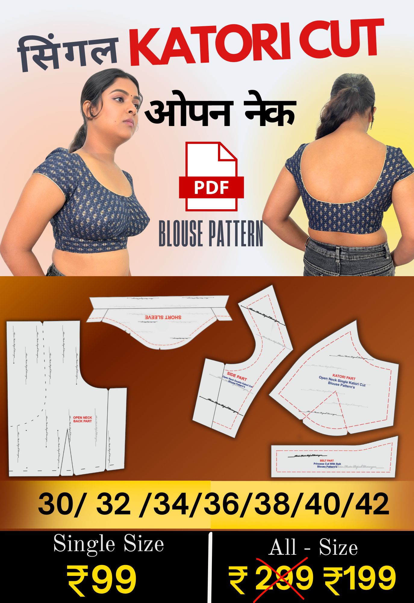Princess cut with belt Open Neck PDF Blouse Pattern